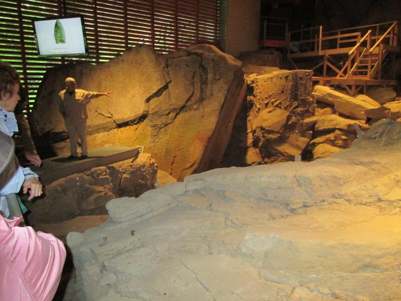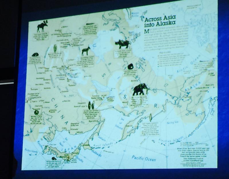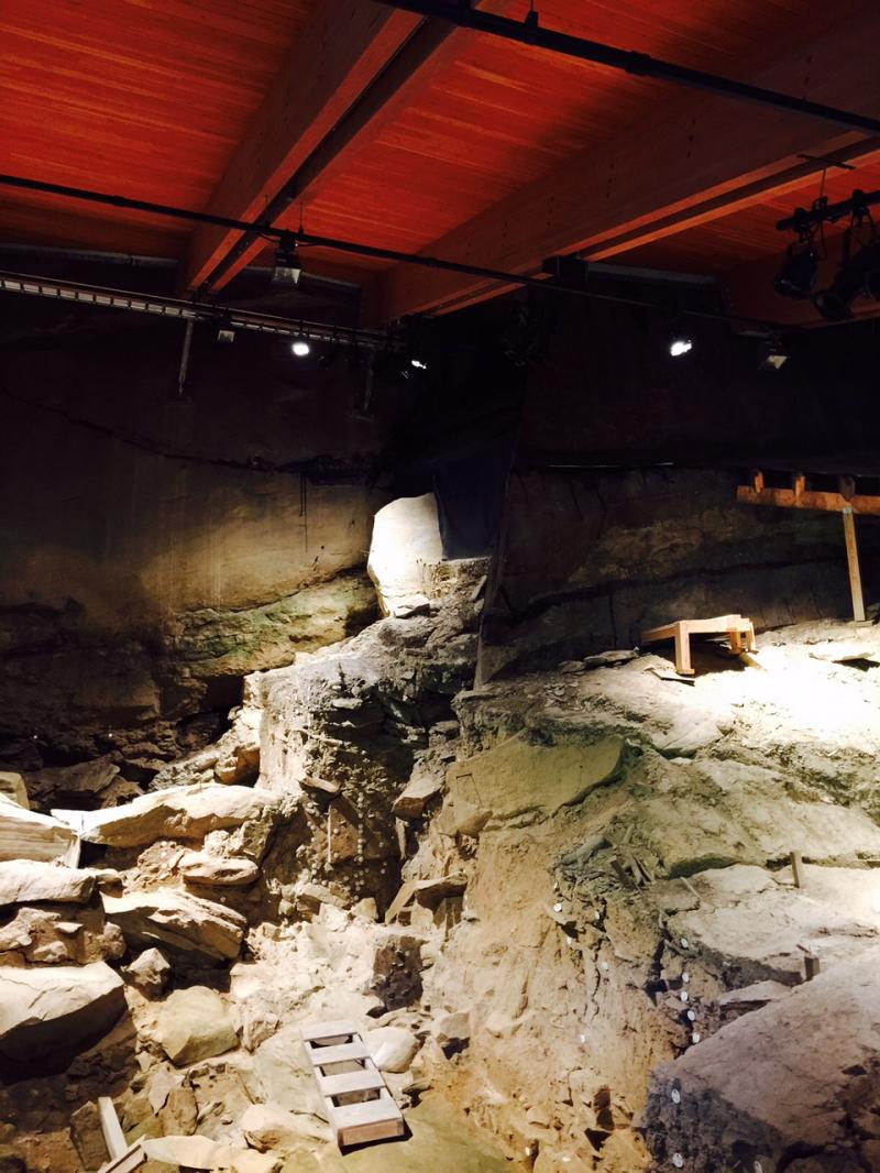 Another slide from Dr. Adovasio, showing the little button-like markers at the Rockshelter, each one representing a special find.